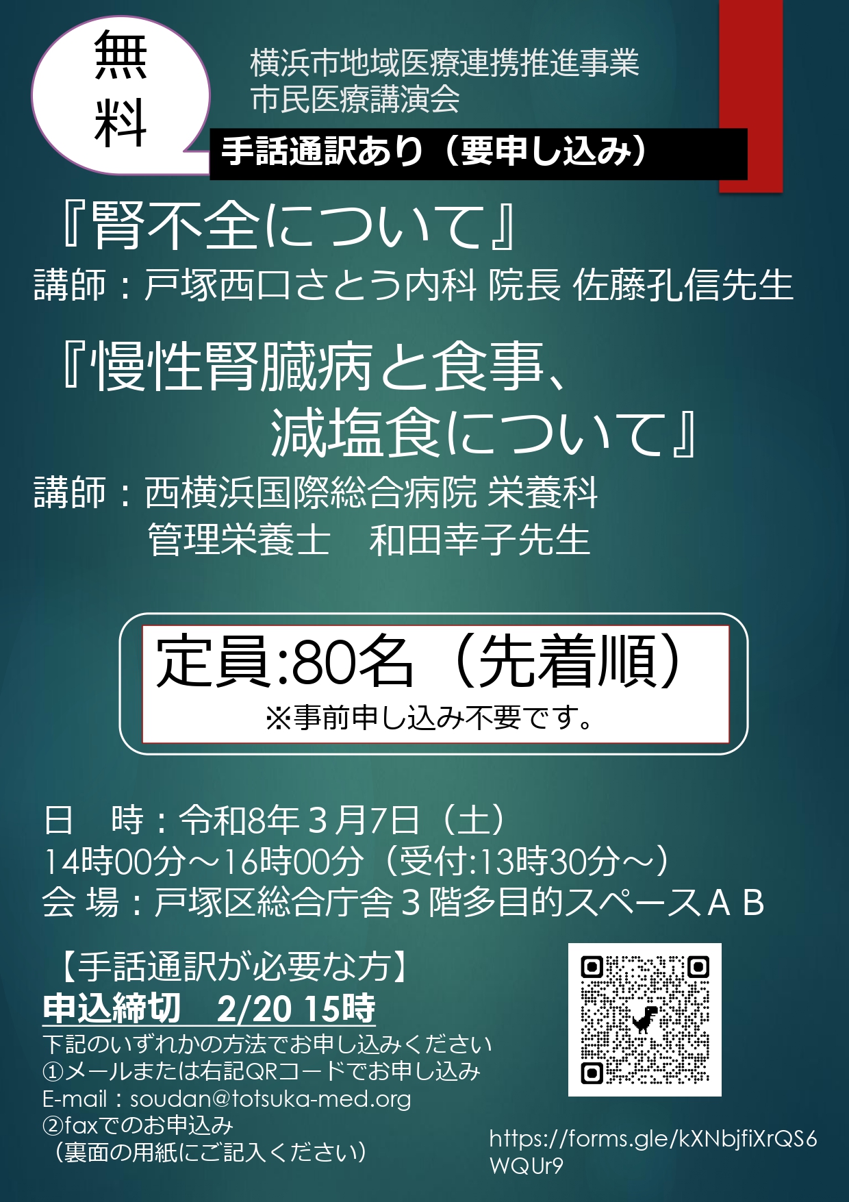 定員:80名(先着順)※事前申し込み不要です。